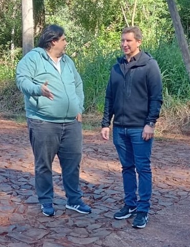 Sebastián Macías junto con el Intendente Fernando Ferreira visitando la obra de asfaltado de la Eva Perón.